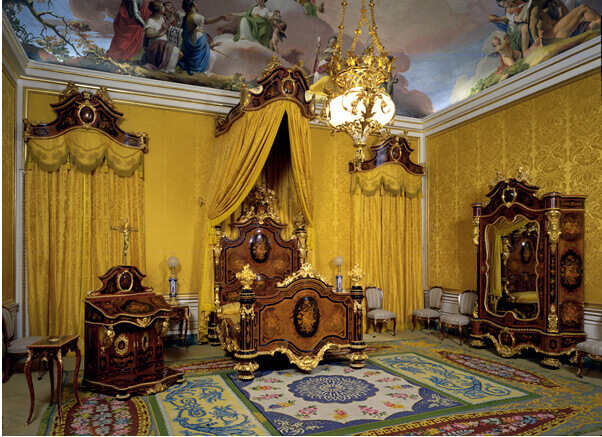 Um dos quartos mais peculiares e, ao mesmo tempo, mais interessante é o quarto de Isabel II. Neste local, uma série de características realmente particulares foi combinada, fazendo com que ele se diferencie de outros exemplos de quartos reais.