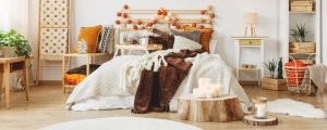 Sem dúvida, esta é uma das estações na qual podemos brincar com os tecidos da casa. Damos adeus ao algodão e ao linho, dando as boas-vindas à lã e ao tricô. O cashmere ou as mantas feitas com lãs e agulhas grossas estão arrasando. Eles são perfeitos para serem colocados ao pé da cama de forma decorativa. Além disso, se você mesmo os fizer, será ainda melhor, visto que o tricô traz muitos benefícios para a sua saúde emocional.