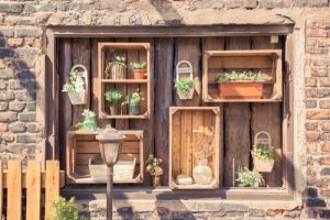 O mais “tradicional” é pendurar um palete na parede e usar as tábuas para apoiar floreiras individuais. Para que fique mais bonito, você poderá colocar algumas luzes… Assim, também ficarão iluminadas à noite! Outra opção é utilizar as madeiras para criar floreiras e organizá-las em diferentes setores da varanda ou do terraço.